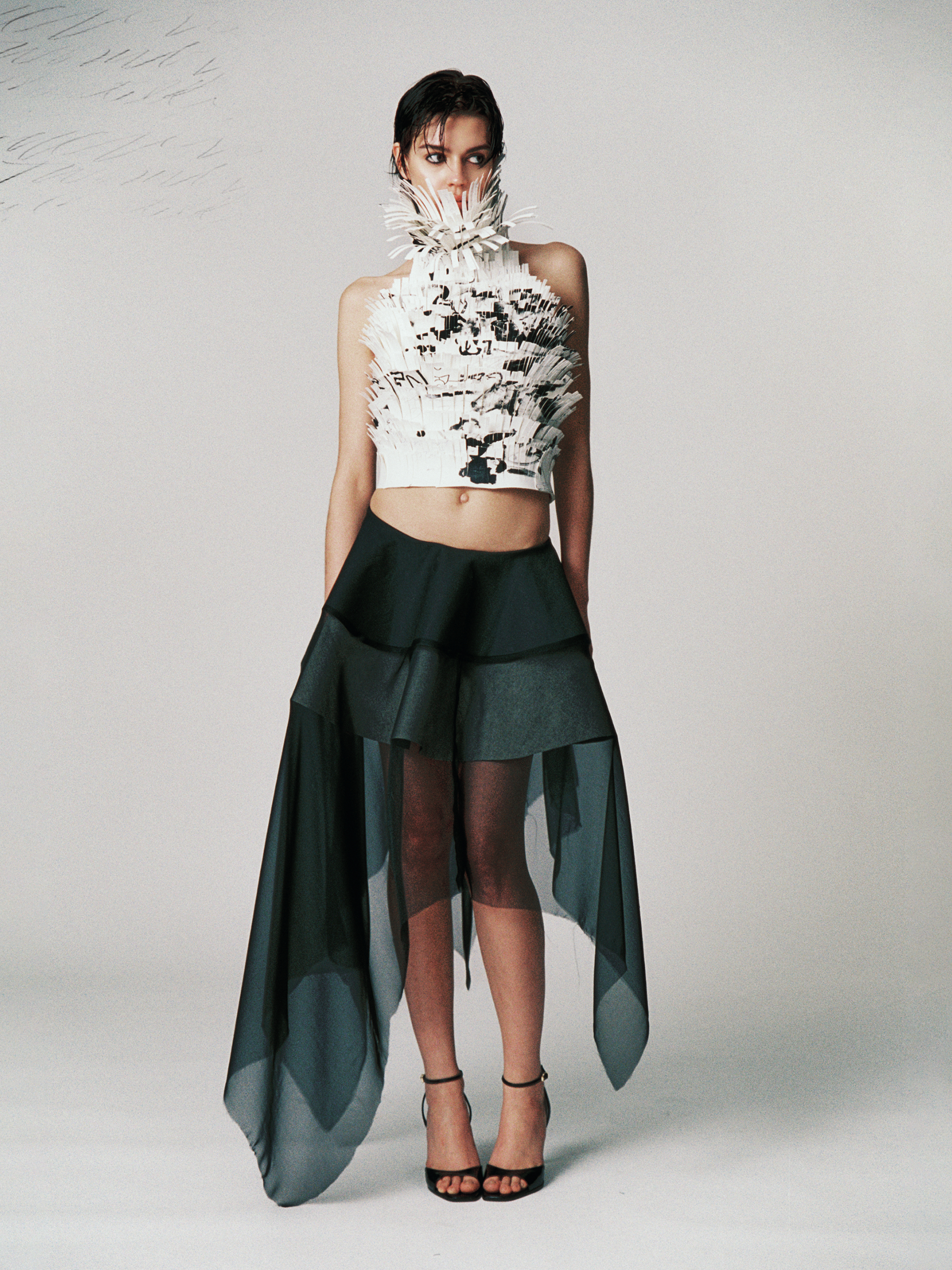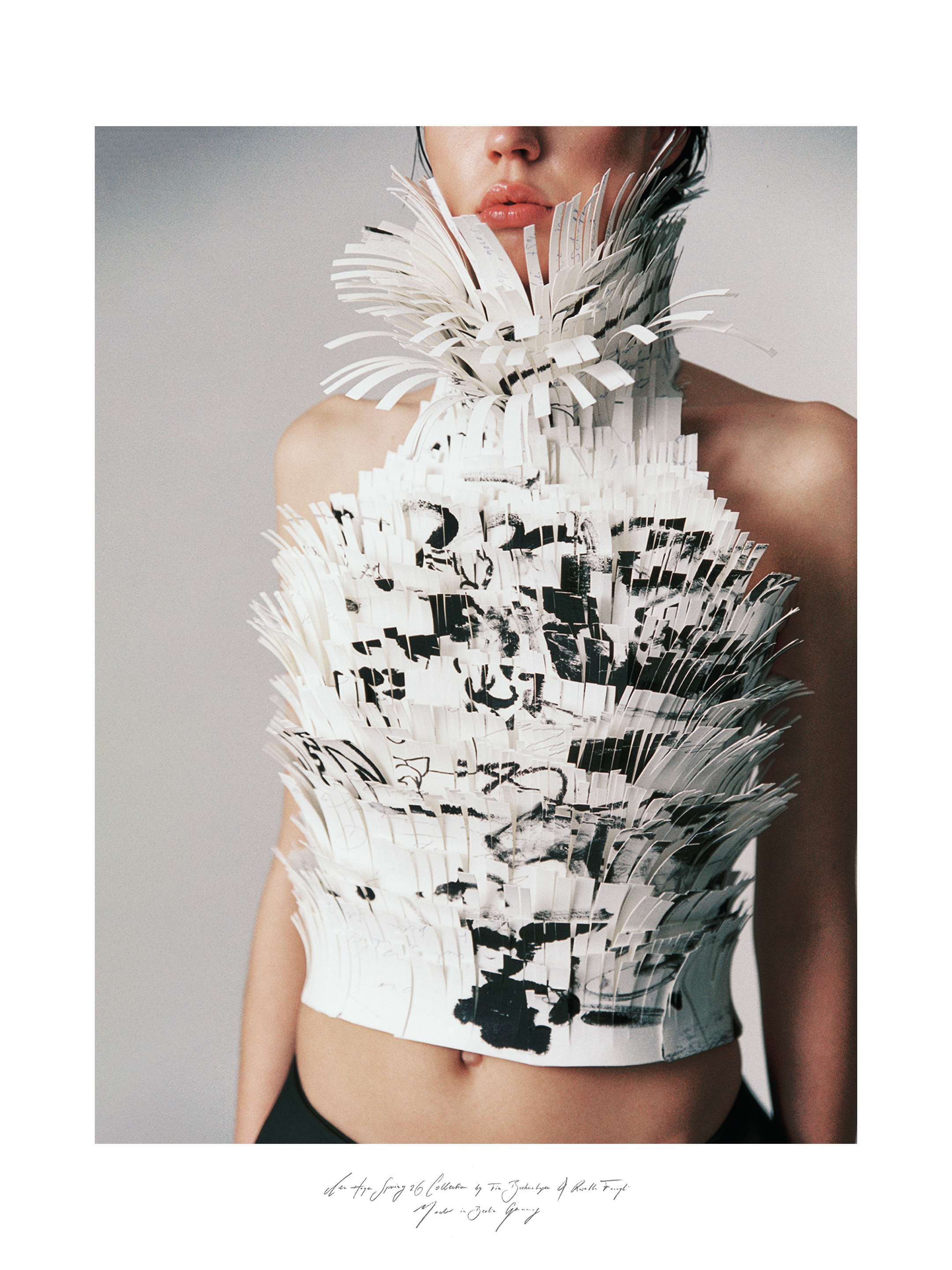 The collection emerges from the studio. From drawing, painting and working with materials. Paper, pen strokes and surfaces are translated into garments.